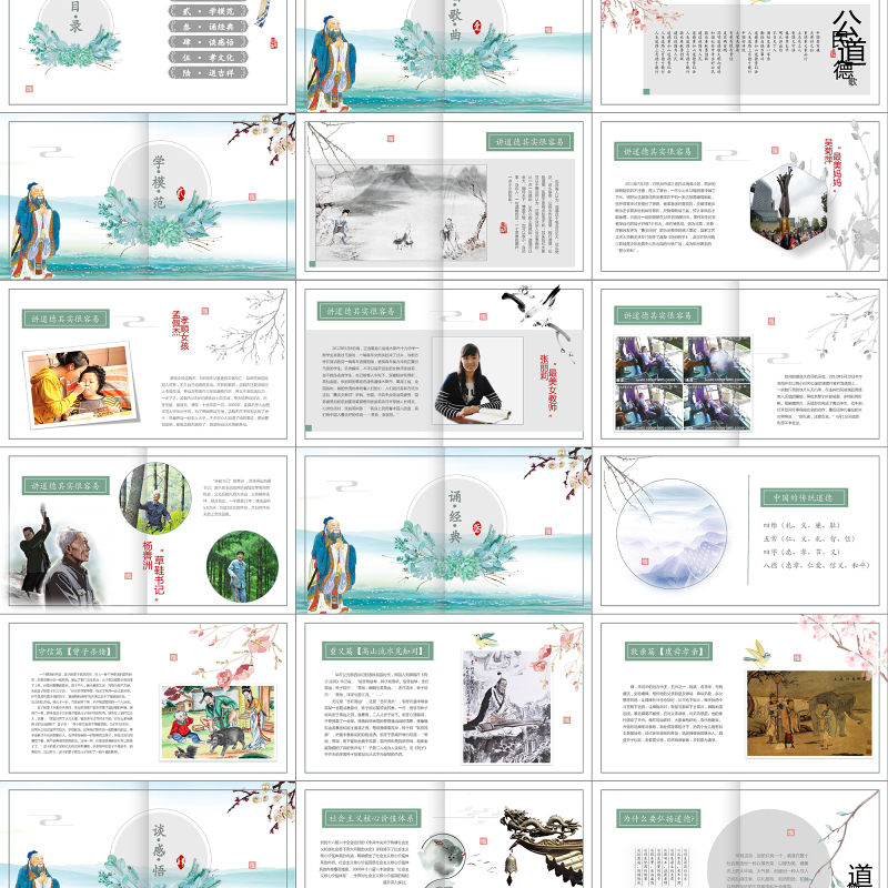 中國風古典雅致禮儀文化家訓家風家規PPT模板包含