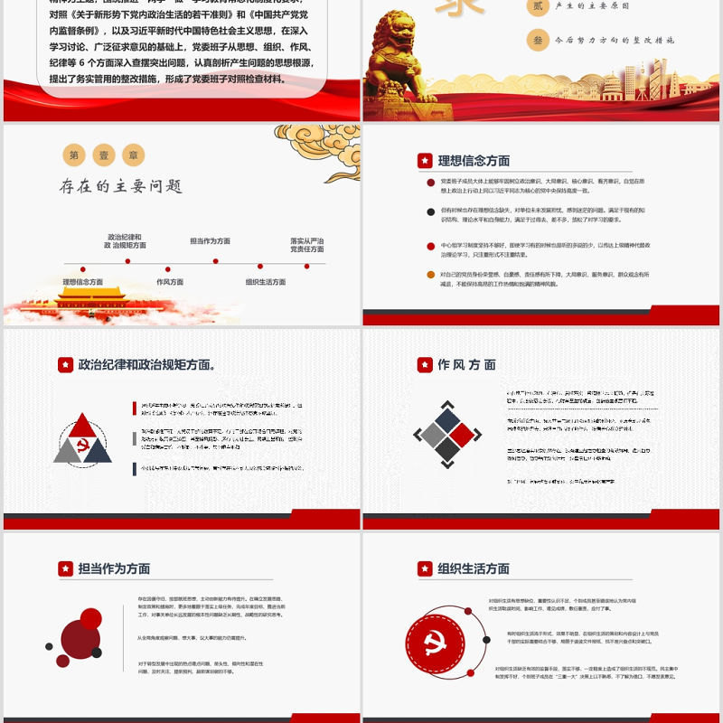 01理想信念方面 政治紀(jì)律和政 治規(guī)矩方面作風(fēng)方面擔(dān)當(dāng)作為方面組織生活方面落實(shí)從嚴(yán)治黨責(zé)任方面第壹章存在的主要問題