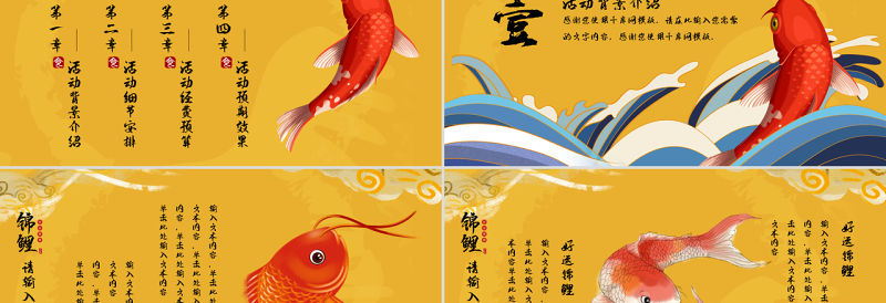金色,國潮,中式,中國風(fēng),好運,錦鯉,鯉魚,手繪,插畫,活動策劃,商業(yè)策劃,商業(yè)計劃,活動宣傳,PPT,模板 Array