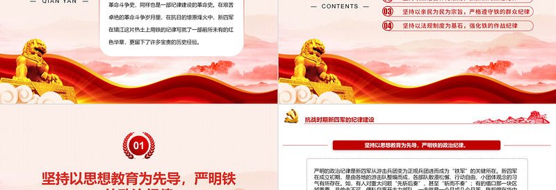 抗戰時期新四軍的紀律建設PPT大氣簡潔以史為鑒黨紀學習教育專題課件 Array