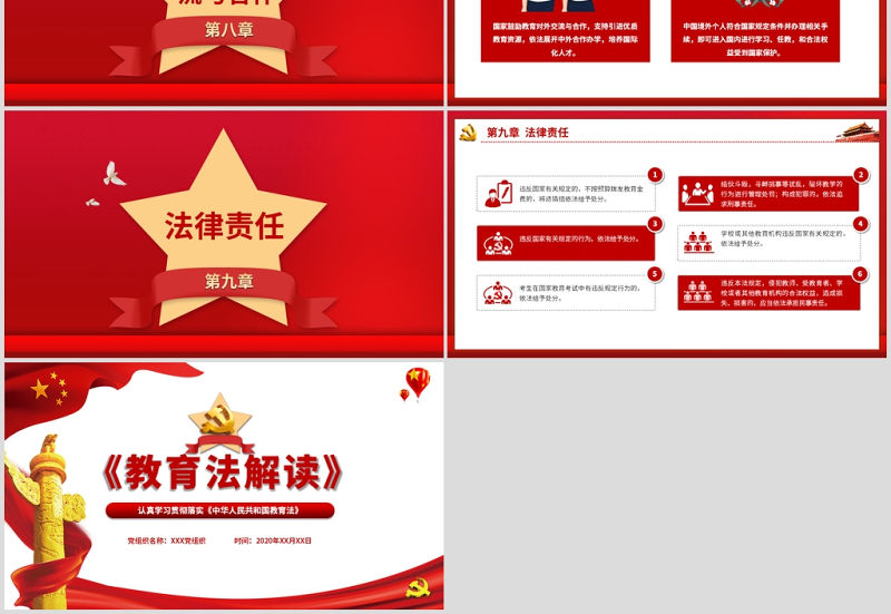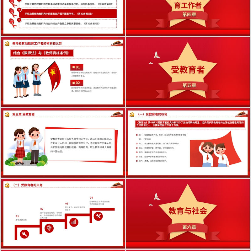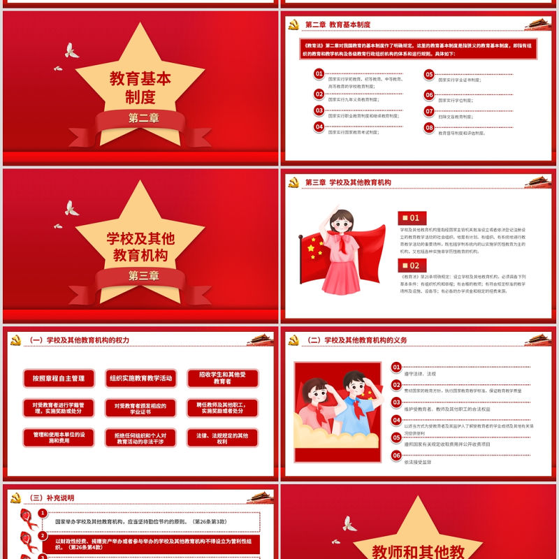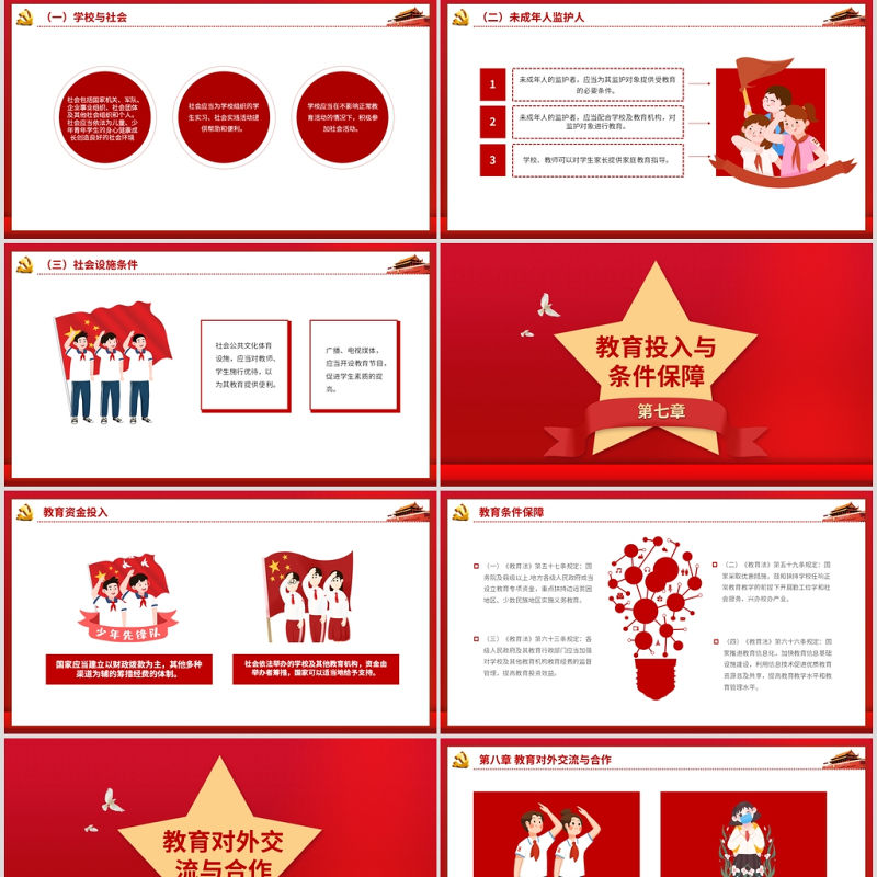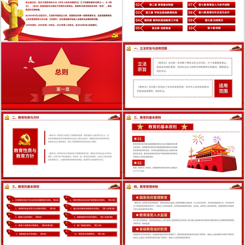 紅色簡潔黨課黨政黨建《教育法解讀》學校黨課動態PPT模板