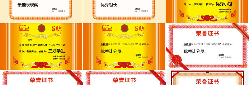 榮譽證書辦圖網同學在班級“詩歌知識競賽”中被評為優秀組員。辦圖網六(1)班班委會