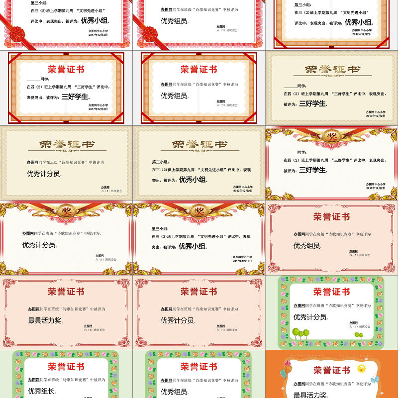 榮譽證書第三小組:在三(2)班上學期第九周 “文明先進小組”評比中,表現突出,被評為:優秀小組。辦圖網中心小學2017年12月2日