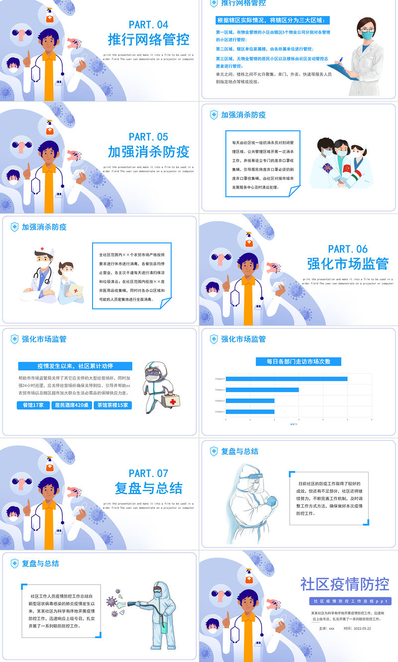 2022社區(qū)疫情防控PPT卡通風(fēng)社區(qū)防疫防控工作總結(jié)課件模板 Array