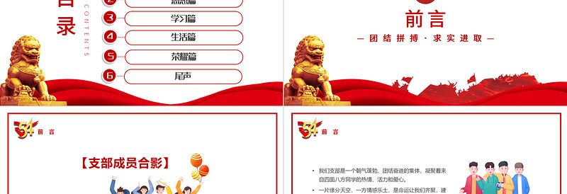 2022五四青年節團支部評選PPT簡約大氣風團支部評選主題課件模板 Array