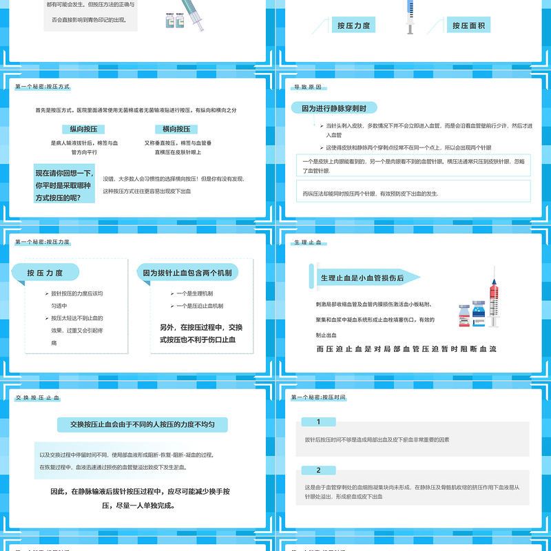 第一個秘密:按壓時間如應用抗凝藥物或凝血功能較差的人群,應延長按壓時間,至針眼不滲血為止。如應用抗凝藥物或凝血功能較差的人群,應延長按壓時間,至針眼不滲血為止。