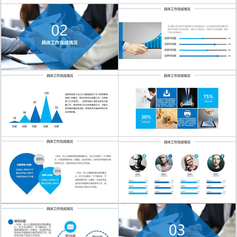 全力融入單位組織開展的各項業務技能活動,在領導的帶領和同事們的幫助下挖掘了自己的潛力,增長了業務知識,開闊了自己的視野,提升了政治業務能力。全力融入單位組織開展的各項業務技能活動,在領導的帶領和同事們的幫助下挖掘了自己的潛力,增長了業務知識,開闊了自己的視野,提升了政治業務能力。30%這里填寫標題75%這里填寫標題具體工作完成情況