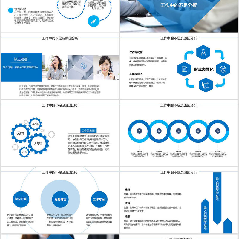 63%85%42%21%工作的差距財務工作距財務管理的要求還有很大的差距。單位財務工作更多的還是會計工作,目前財務僅僅停留在事中記帳、事后算帳,對事務發展的預見性不夠,不能將工作做在前面,往往是碰到問題解決問題,而不能做到防患于未然。工作中的不足及原因分析