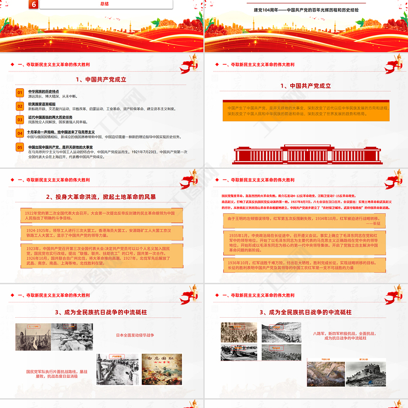 慶祝建黨104周年P(guān)PT紅色大氣中國(guó)共產(chǎn)黨的百年光輝歷程和歷史經(jīng)驗(yàn)七一黨課課件 Array