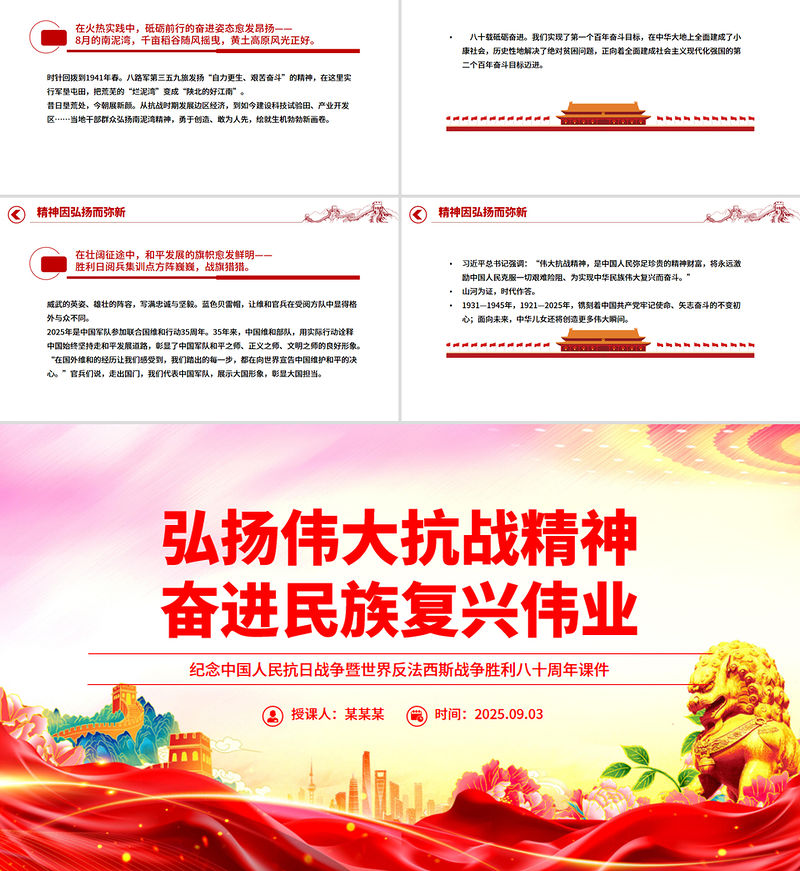 弘揚偉大抗戰精神奮進民族復興偉業PPT紀念抗戰勝利八十周年課件 Array