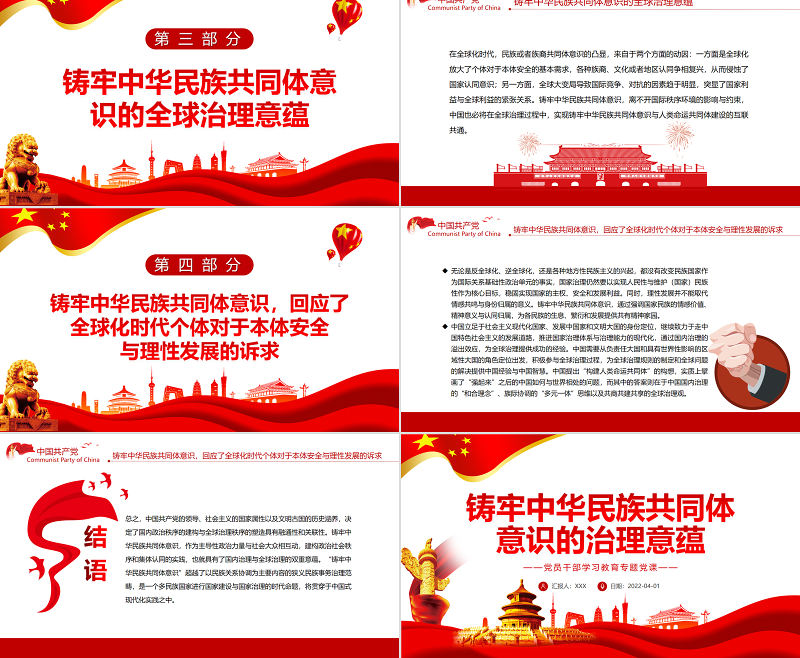 鑄牢中華民族共同體意識的治理意蘊PPT紅色簡約風黨員干部學習教育專題黨課課件模板 Array
