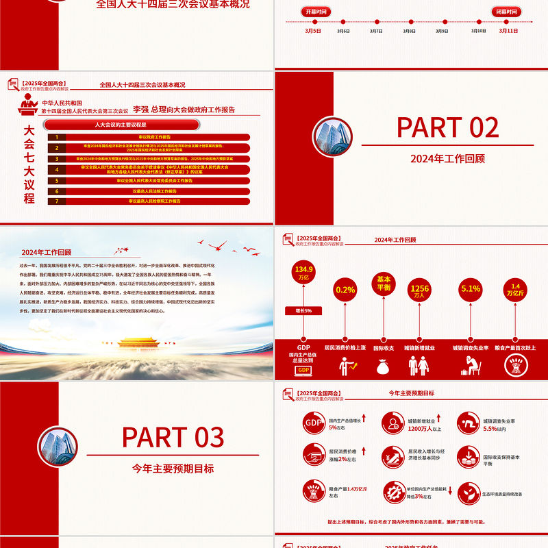 目 錄全國人大十四屆三次會(huì)議基本概況012024年工作回顧02今年主要預(yù)期目標(biāo)032025年政府工作任務(wù) 04政府工作報(bào)告的十大看點(diǎn)05