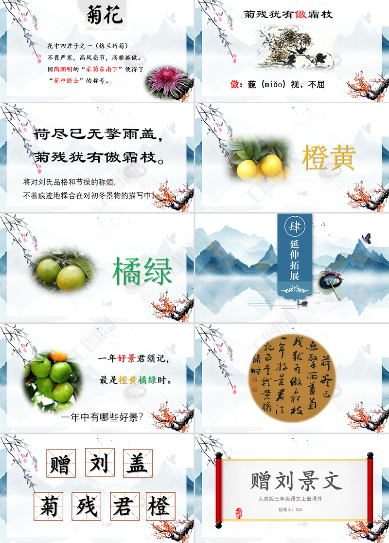 工圖網(wǎng)提供2022古詩三首 贈劉景文PPT中國風(fēng)第4課小學(xué)三年級語文上冊部編人教版教學(xué)課件供會員免費下載。更多精彩黨課PPT素材,盡在工圖網(wǎng)。