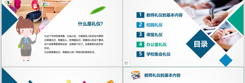 1教師禮儀的基本內(nèi)容2校園禮儀3課堂禮儀4辦公室禮儀5學(xué)校集會禮儀目錄