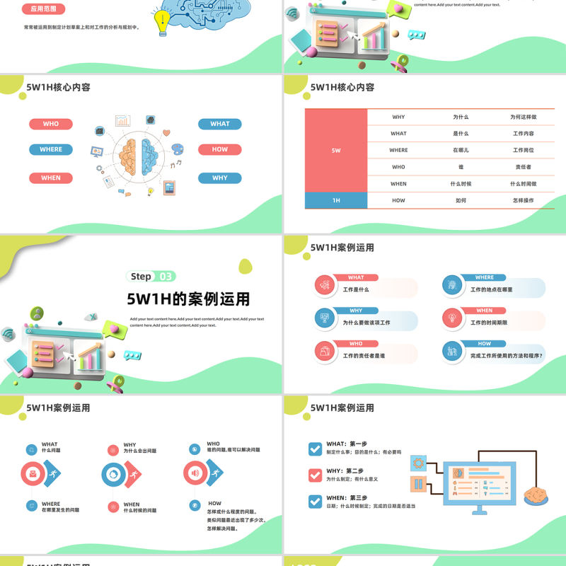 2023年5W1H分析法PPT插畫風企業員工入職培訓總結計劃課件模板下載 Array
