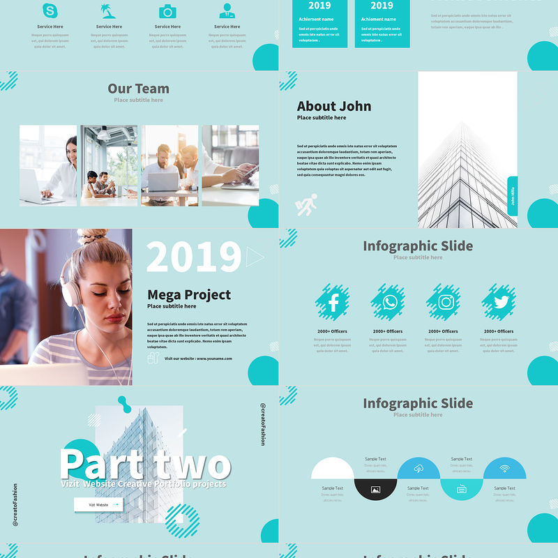 清新孟菲斯風格工作總結匯報PPT模板-MF069包含