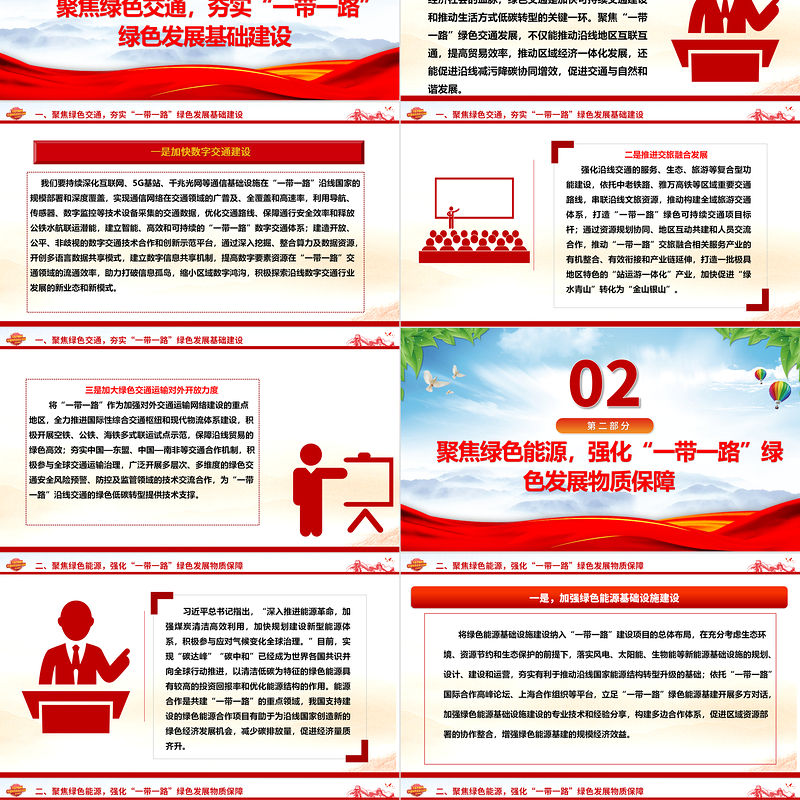 大力推動“一帶一路”綠色發(fā)展ppt大氣黨政弘揚(yáng)一帶一路精神微黨課 Array