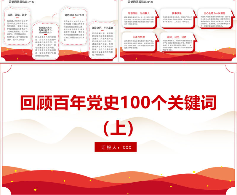 2021 回顧百年黨史 100個關鍵詞(上) PPT 慶祝建黨100周年 專題系列 黨課 課件模板 Array