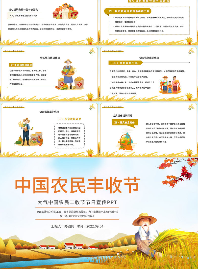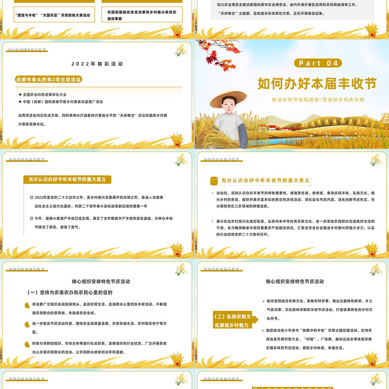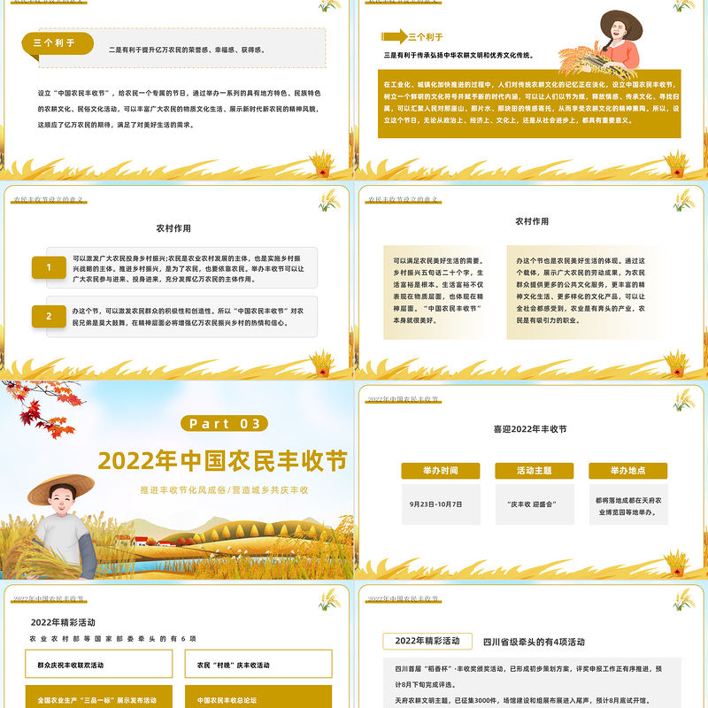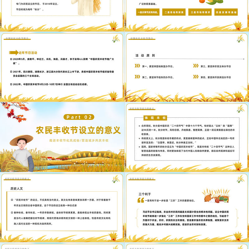 2022農民豐收節PPT卡通風中國農民豐收節介紹課件模板 Array