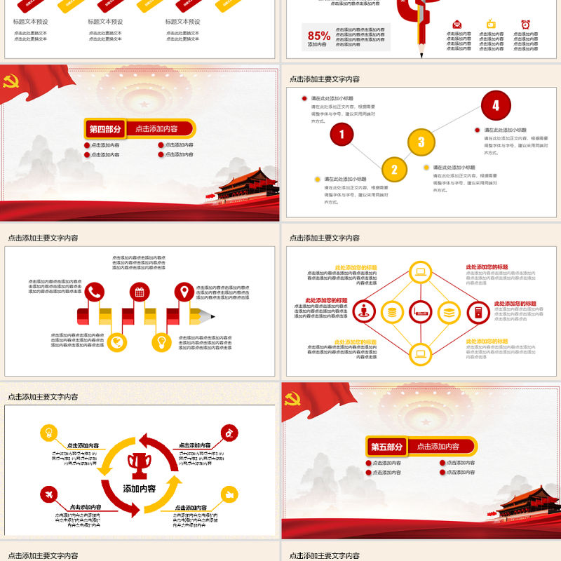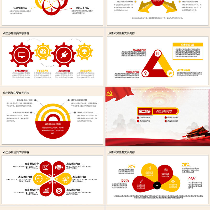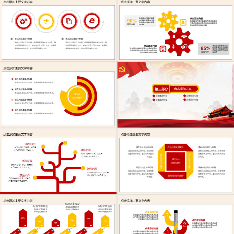2019年中國風學習貫徹十九大會議精神黨支部黨員黨課學習PPT模板包含