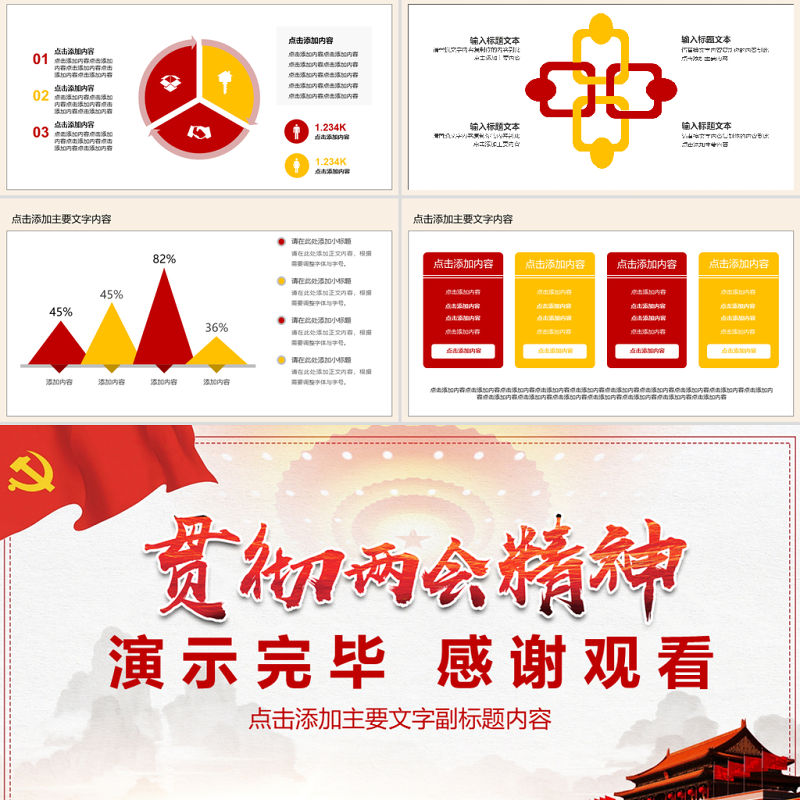 2020藍色紅色新擬態風全國兩會聚焦兩會精神PPT模版包含