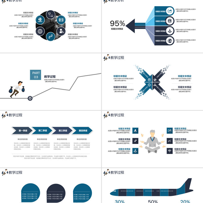 成熟簡約藍色奔跑人物工作總結/教學準備 Array
