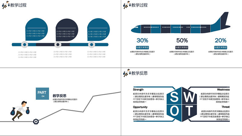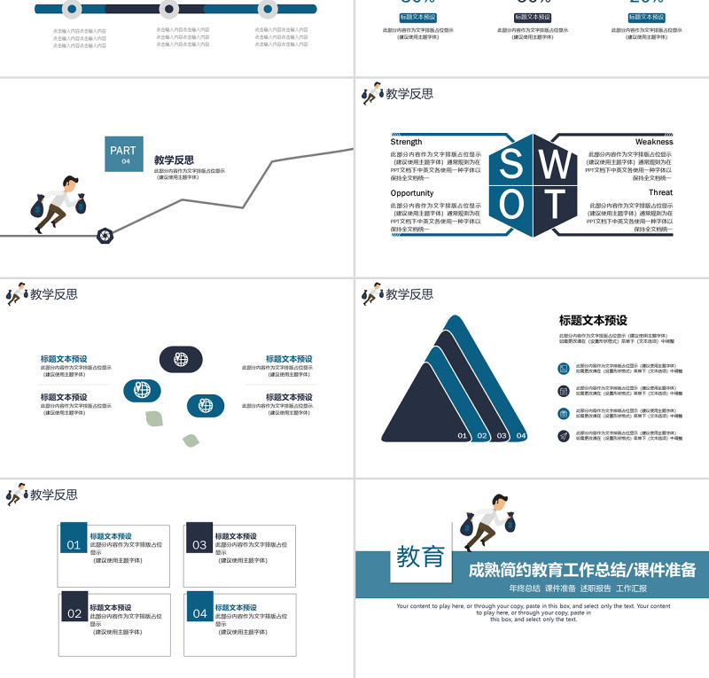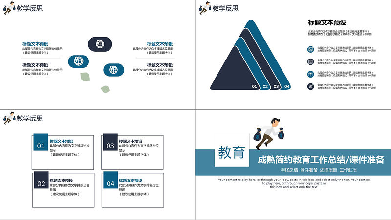 成熟簡約藍色奔跑人物工作總結/教學準備