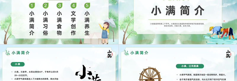 2023二十四節氣小滿PPT卡通插畫風二十四節氣之小滿知識宣講課件模板下載