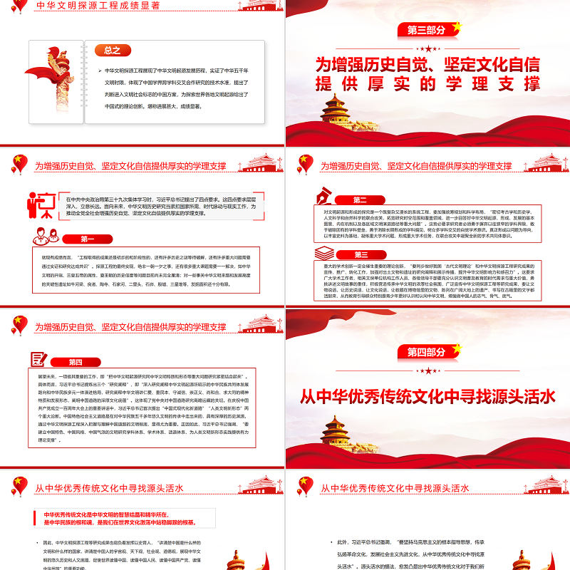 闡明中國道路的深厚文化底蘊PPT紅色大氣風黨員干部學習教育專題黨課課件模板 Array