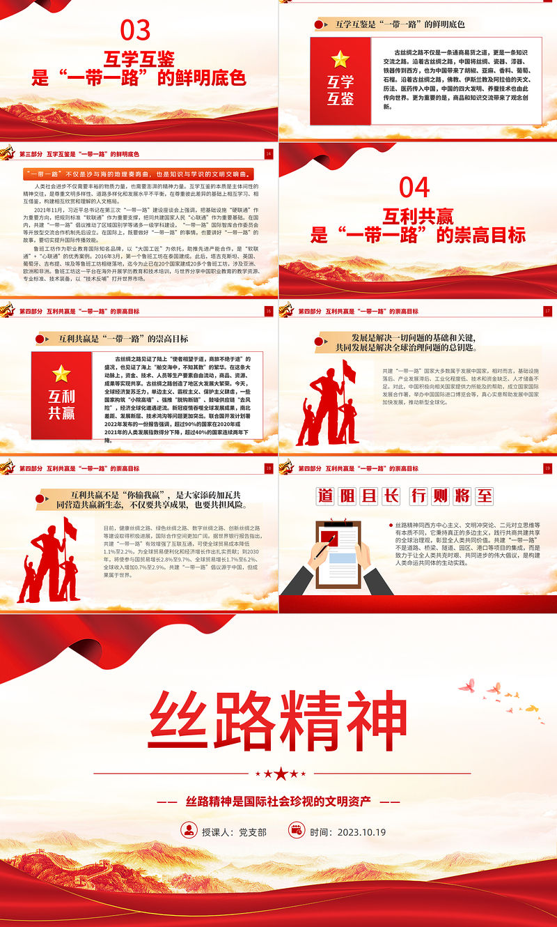 絲路精神PPT大氣簡潔絲路精神是國際社會珍視的文明資產中國精神譜系黨課課件 Array