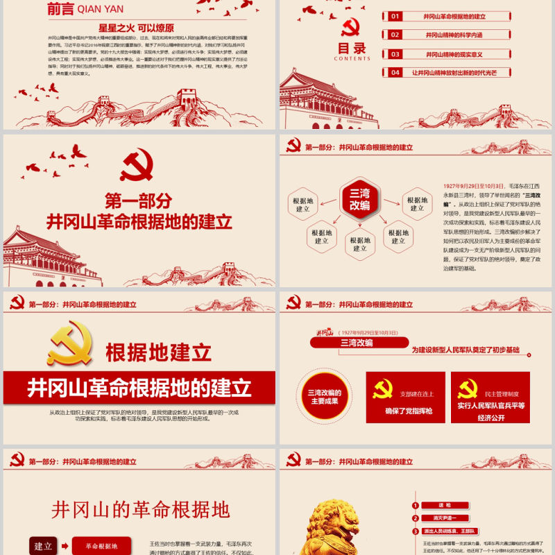 工圖網提供2020年紅色革命不忘初心繼續前行黨政井岡山精神通用ppt模板供會員免費下載。更多精彩黨課PPT素材,盡在工圖網。