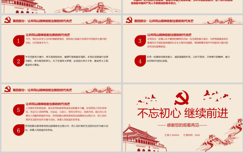 2020年紅色革命不忘初心繼續前行黨政井岡山精神通用ppt模板