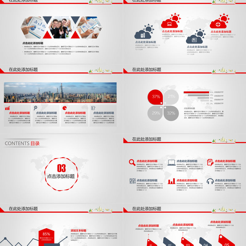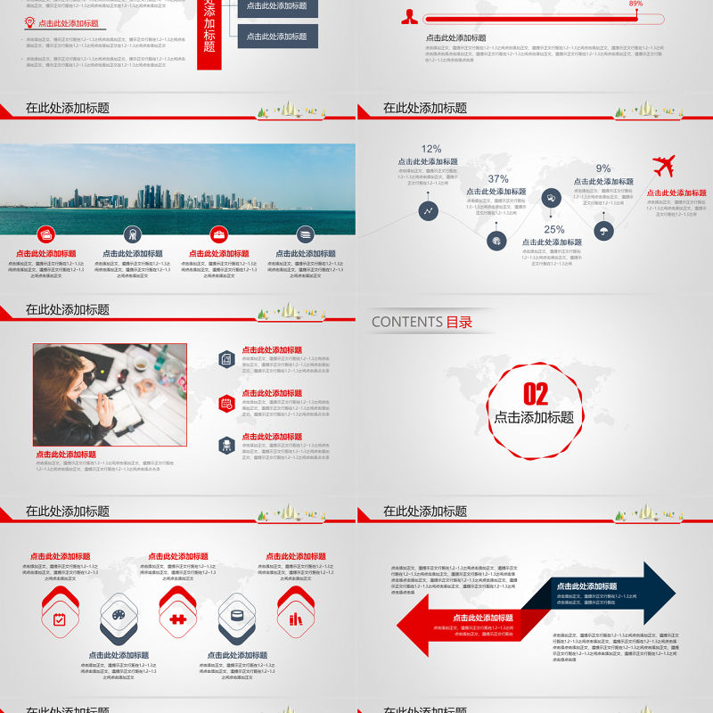 向上走勢箭頭創意封面紅色精美工作匯報ppt模板 Array