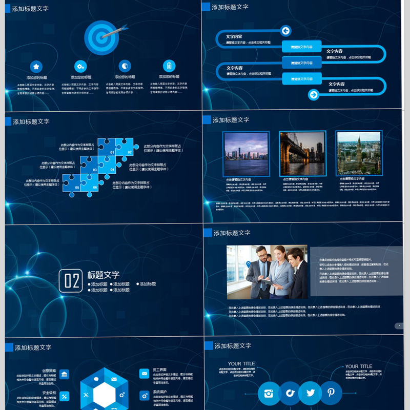 2021年終總結ppt精美藍色互聯網公司科技感工作計劃模板包含