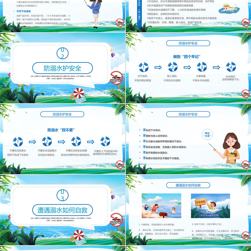 2022珍愛生命謹防溺水PPT卡通風中小學生防溺水安全教育主題班會課件模板