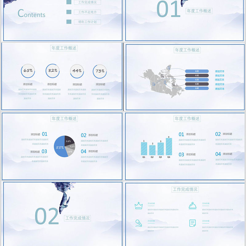莫蘭迪水彩手繪個人總結匯報工作總結年終總結教學通用PPT模板包含