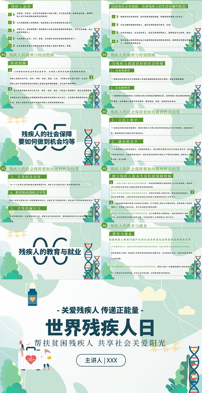 工圖網(wǎng)提供國際殘疾人日PPT綠色清新12月3日關愛殘疾人傳遞正能量社區(qū)公益宣傳課件供會員免費下載。更多精彩黨課PPT素材,盡在工圖網(wǎng)。