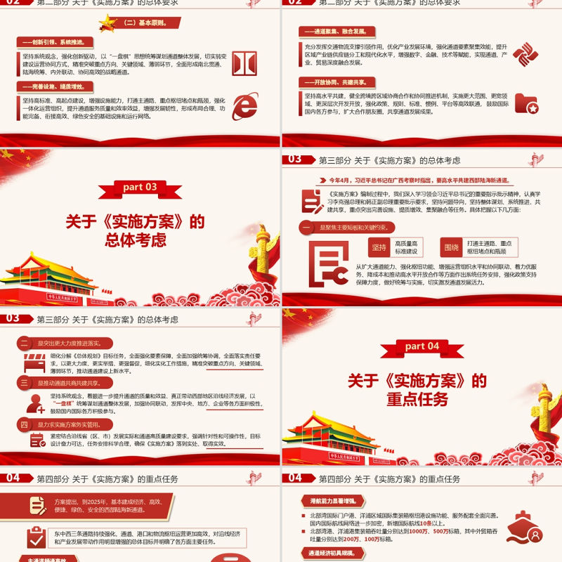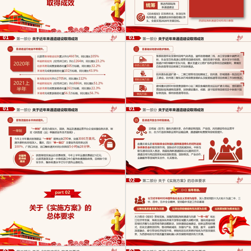 > 黨課PPT > 2021“十四五”推進(jìn)西部陸海新通道高質(zhì)量建設(shè)實(shí)施方案PPT大氣簡潔風(fēng)構(gòu)建通道融合開放發(fā)展新局黨課模板.PPTX 【圖片、文字、動(dòng)畫均可編輯】