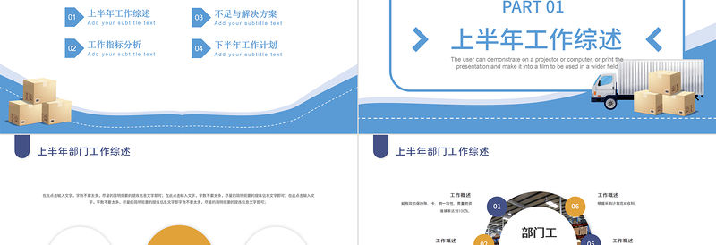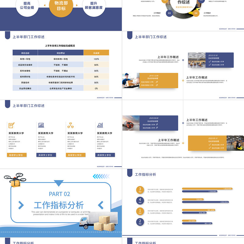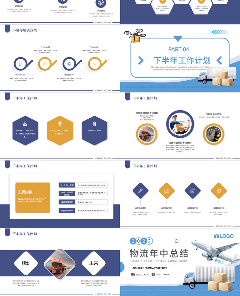 2022物流行業年中總結計劃PPT藍色沉靜簡潔風物流部經理物流公司下半年工作計劃述職報告 Array