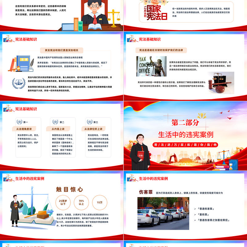 2022我與憲法PPT紅色黨政風我與憲法普法知識國家憲法日主題班會課件模板