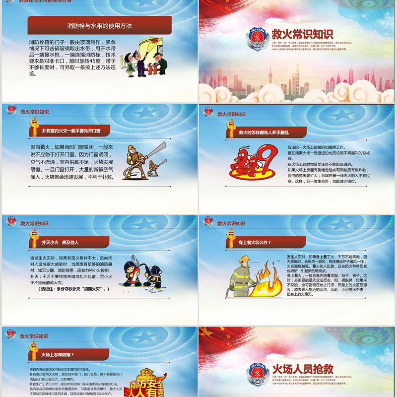 應該統一火場上的組織和指揮工作。 要在距離火場一定遠近的地方設置不同層次的警戒線。 在火場上疏散物資要注意不能阻塞通道。 如果火場上房屋有倒塌危險或可燃物質有爆炸欷,警戒的范圍要擴大;且留在第一線滅火的人不宜過多。這樣,萬一發生意外,也能減少傷亡。 救火常識知識