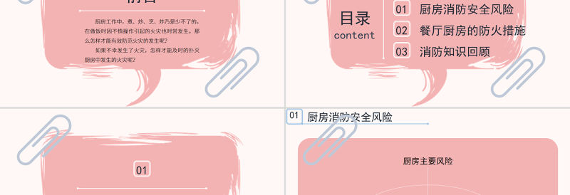 酒店廚房消防知識培訓PPT清新簡潔普及消防知識PPT Array