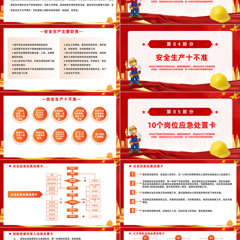 10個崗位應(yīng)急處置卡第05部分安全生產(chǎn)是保護勞動者的安全、健康和國家財產(chǎn),促進社會生產(chǎn)力發(fā)展的基本保證,也是保證社會主義經(jīng)濟發(fā)展,進一步實行改革開放的基本條件