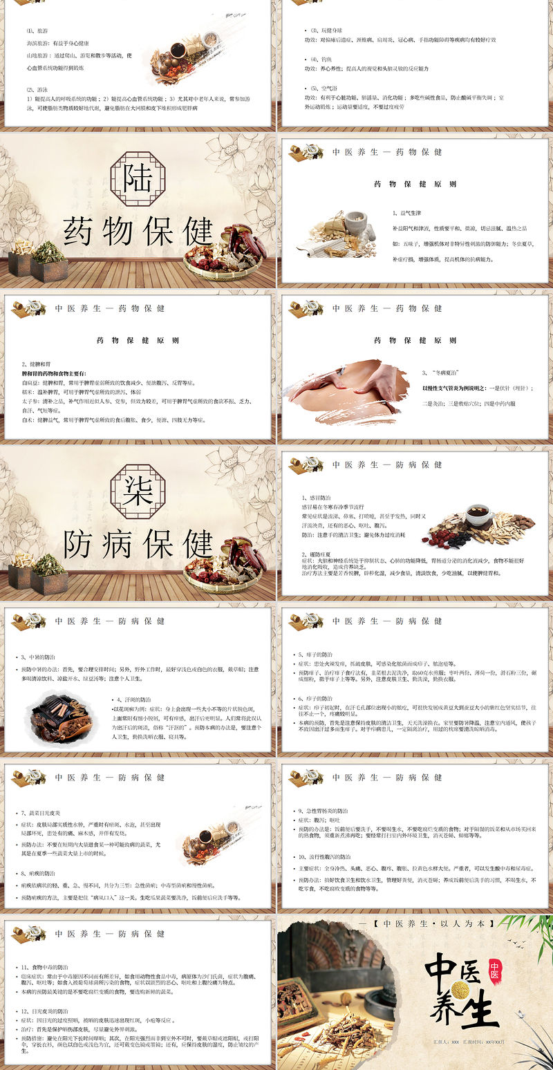 2022中國傳統文化之中醫養生PPT創意水墨風中醫養生介結通用PPT模板 Array