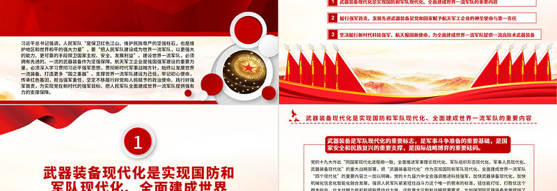 武器裝備現代化是實現國防和 軍隊現代化、全面建成世界 一流軍隊的重要內容1