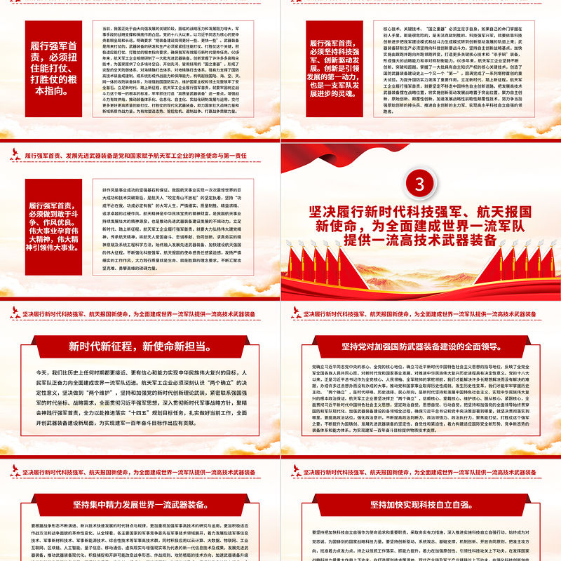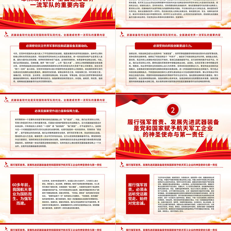 武器裝備現代化是實現國防和軍隊現代化、全面建成世界一流軍隊的重要內容履行強軍首責、發展先進武器裝備是黨和國家賦予航天軍工企業的神圣使命與第一責任堅決履行新時代科技強軍、航天報國新使命,為全面建成世界一流軍隊提供一流高技術武器裝備