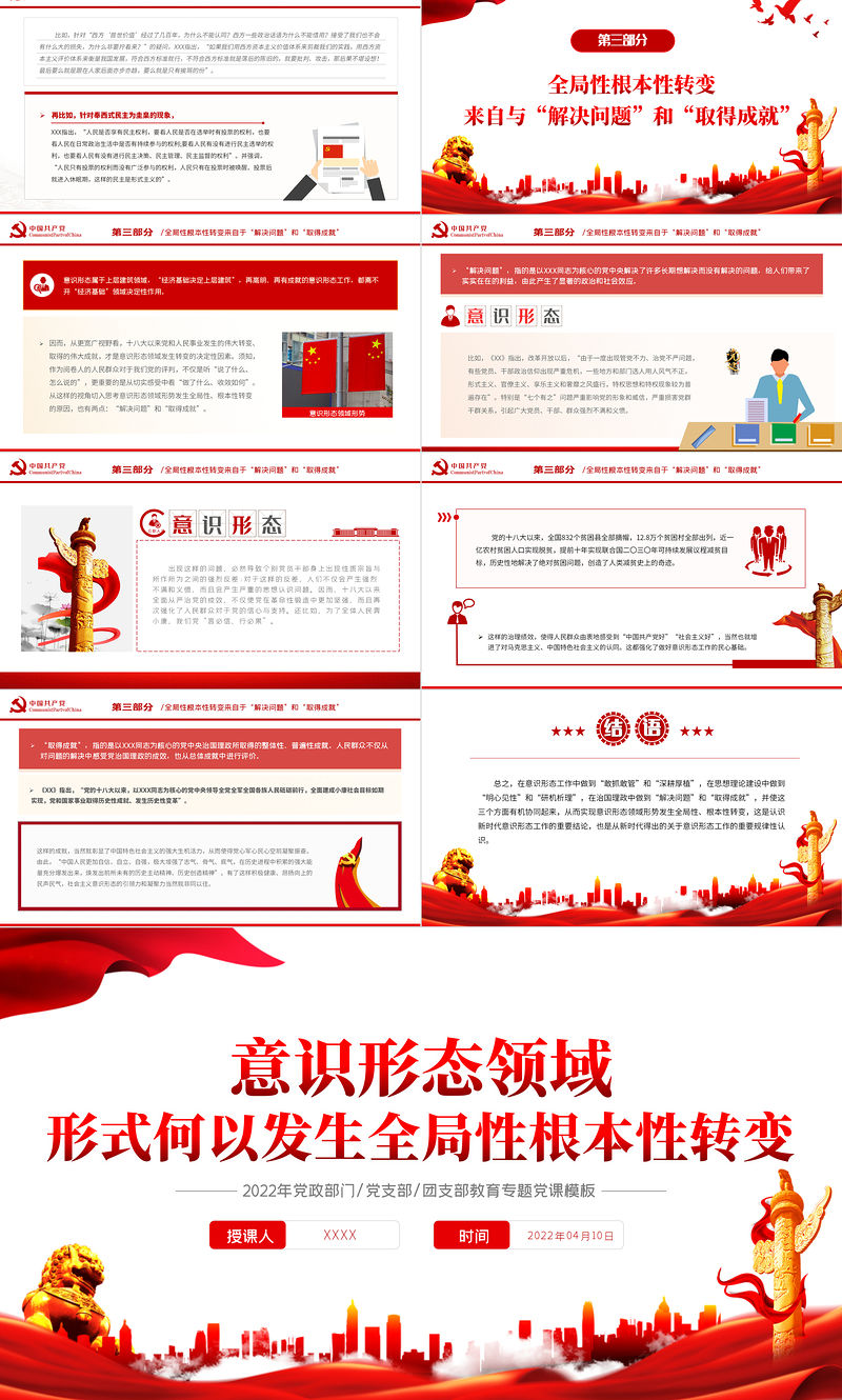 意識形態領域形勢何以發燒全局性根本性轉變PPT紅色黨政風2022年黨政部門教育專題黨課課件模板 Array