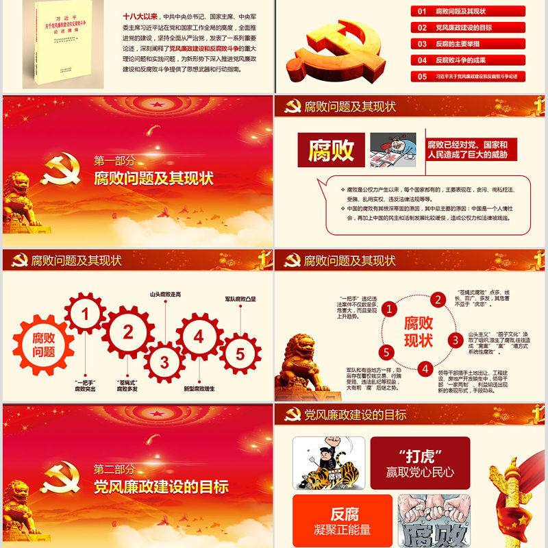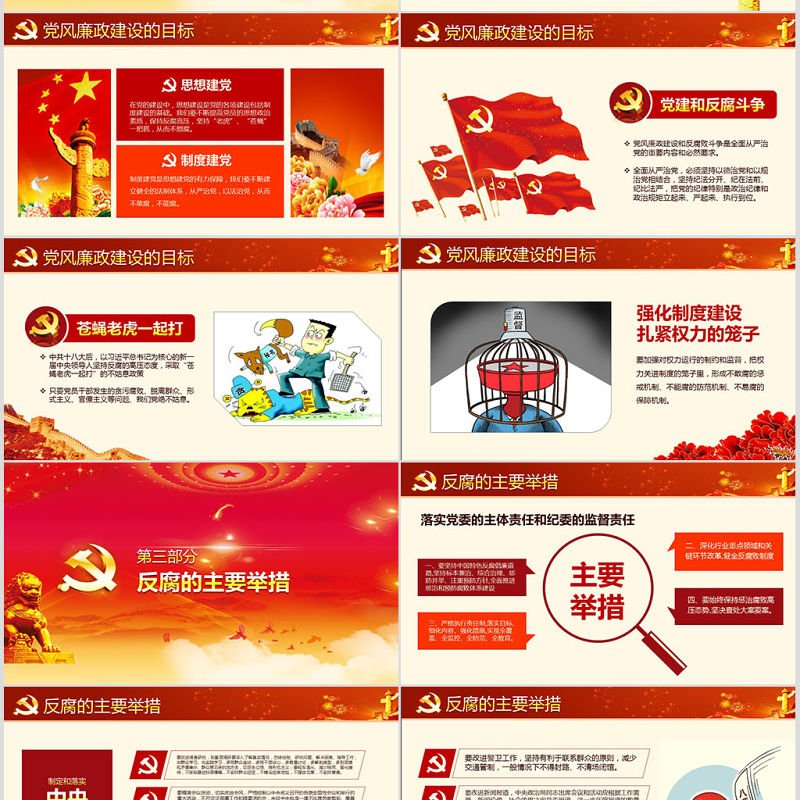 黨風廉政建設的目標中共十八大后,以為核心的新一屆中央領導人堅持反腐的高壓態度,采取“蒼蠅老虎一起打”的不姑息政策只要黨員干部發生的貪污腐敗、脫離群眾、形式主義、官僚主義等問題、我們黨絕不姑息。 蒼蠅老虎一起打