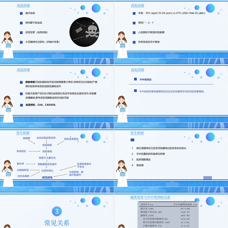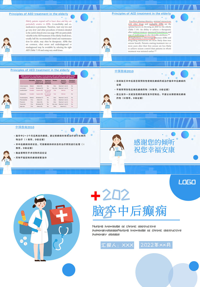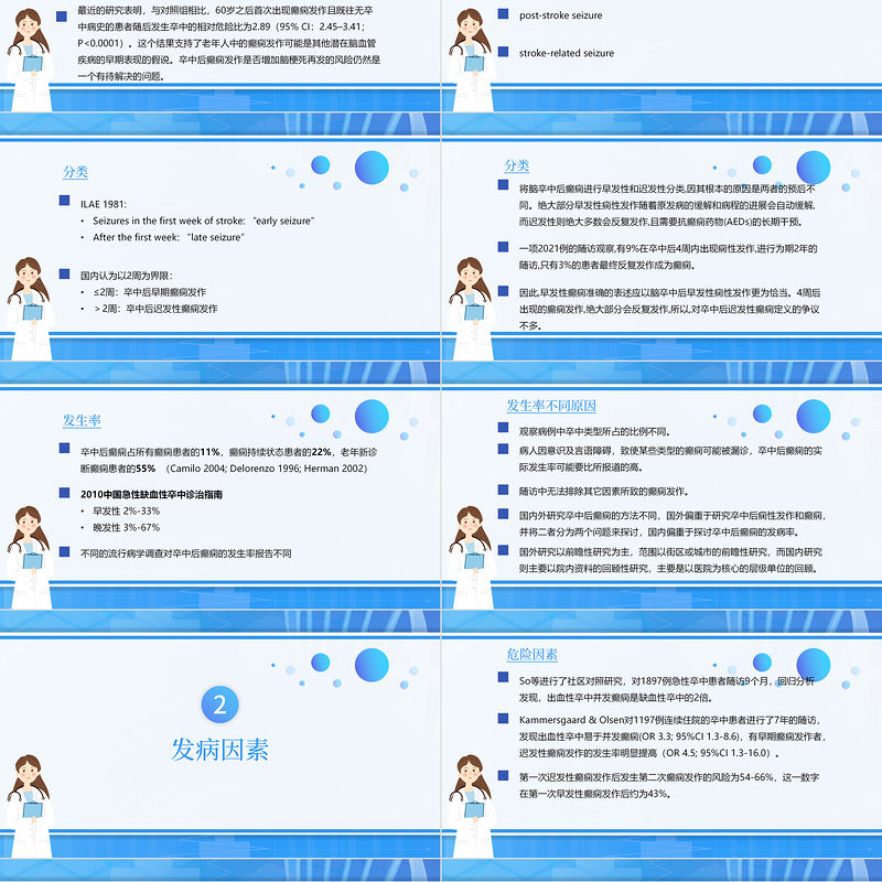 2022腦卒中后癲癇病PPT創意清新插畫風醫療教學各種疾病醫理PPT模板 Array