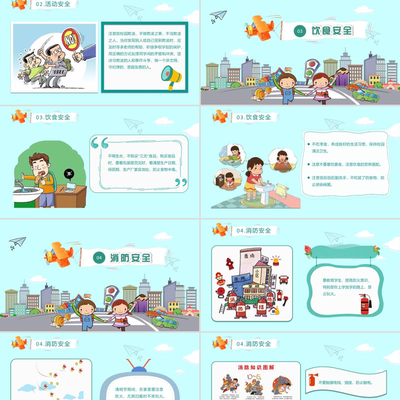 03.飲食安全不吃零食,養成良好的生活習慣,保持校園清潔衛生。注意不要暴飲暴食,注意飲食的營養搭配。注意飯前飯后勤洗手,不吃臟了的食物,防止感染病菌。